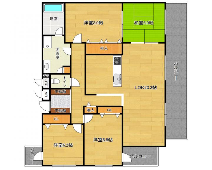 | 間取り詳細 | 和6.0帖 洋8.0帖 洋6.8帖 洋6.2帖 LDK23.2帖 |