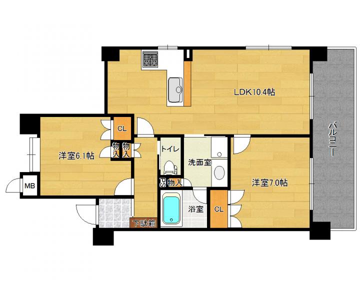 | 間取り詳細 | 洋7.0帖 洋6.1帖 LDK10.4帖 |