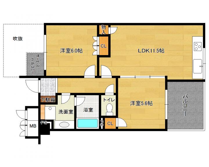 | 間取り詳細 | 洋6.0帖 洋5.6帖 LDK11.5帖 |