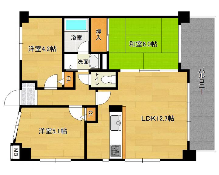 | 間取り詳細 | 和6.0帖 洋5.1帖 洋4.2帖 LDK12.7帖 |