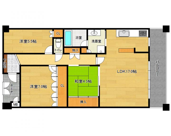 | 間取り詳細 | 和4.5帖 洋7.0帖 洋5.5帖 LDK17.0帖 |