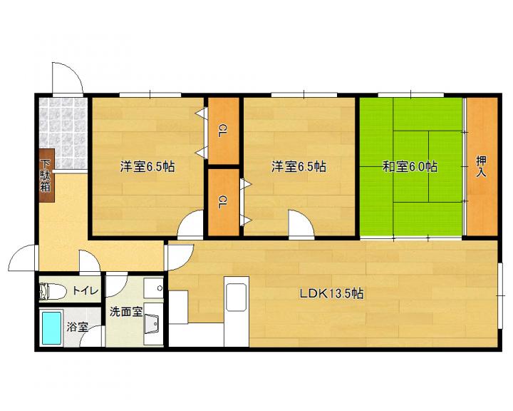 | 間取り詳細 | 和6.0帖 洋6.5帖 洋6.5帖 LDK13.5帖 |