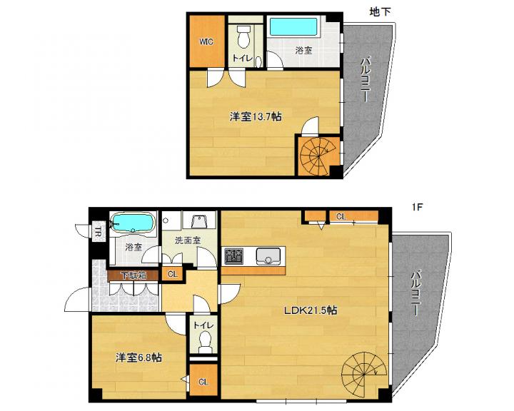 | 間取り詳細 | 洋13.7帖 洋6.8帖 LDK21.5帖 |