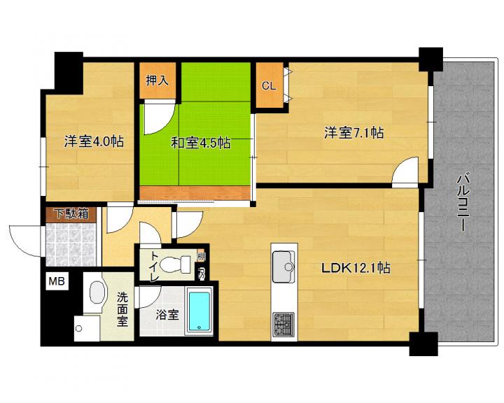 | 間取り詳細 | 和4.5帖 洋7.1帖 洋4.0帖 LDK12.1帖 |