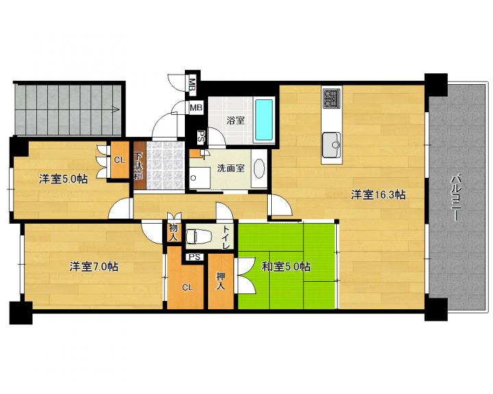 | 間取り詳細 | 和5.0帖 洋7.0帖 洋5.0帖 LDK16.3帖 |