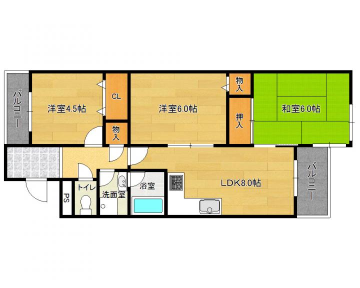 | 間取り詳細 | 和6.0帖 洋6.0帖 洋4.5帖 LDK8.0帖 |