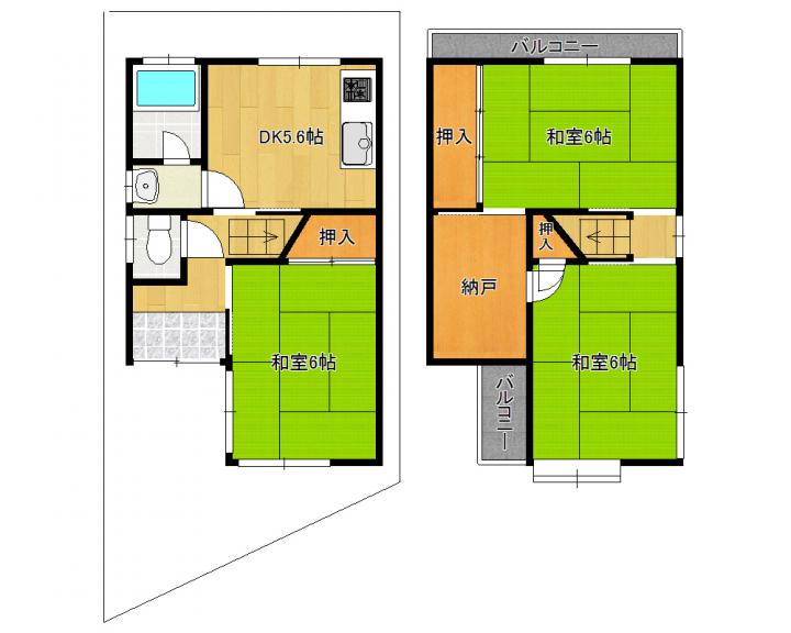 | 間取り詳細 | DK5.6帖×和室6帖 2F:和室6帖×和室6帖×納戸 |