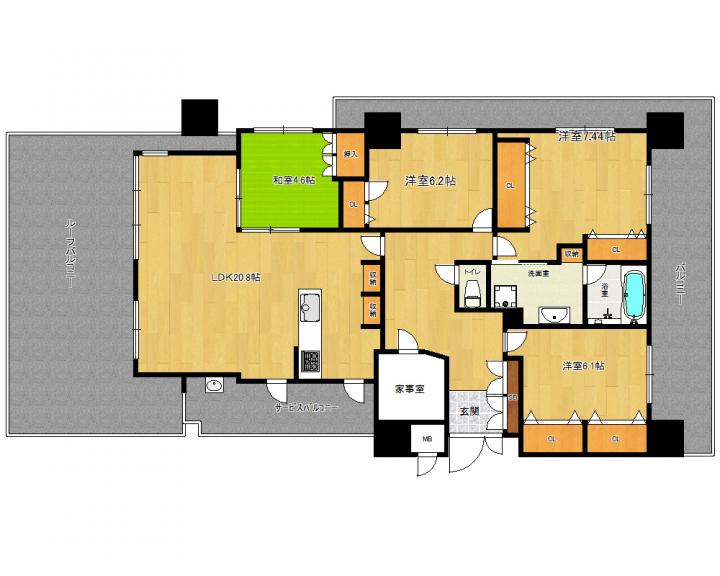 | 間取り詳細 | 洋8.7帖 洋6.2帖 洋6.1帖 和4.6帖 LDK20.8帖 |