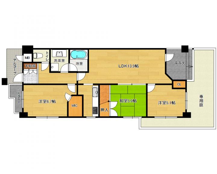 | 間取り詳細 | 和5.0帖 洋6.7帖 洋5.1帖 LDK13.9帖 |