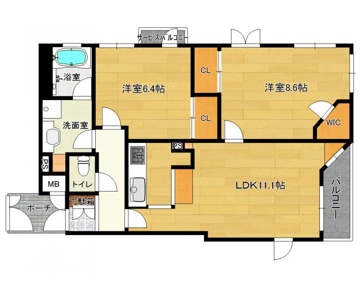 | 間取り詳細 | 洋8.6帖 洋6.4帖 LDK11.1帖 |