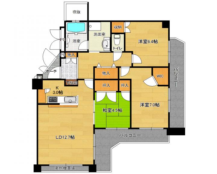 | 間取り詳細 | 和4.5帖 洋7.0帖 洋6.4帖 LD12.7帖 K3.0帖 |