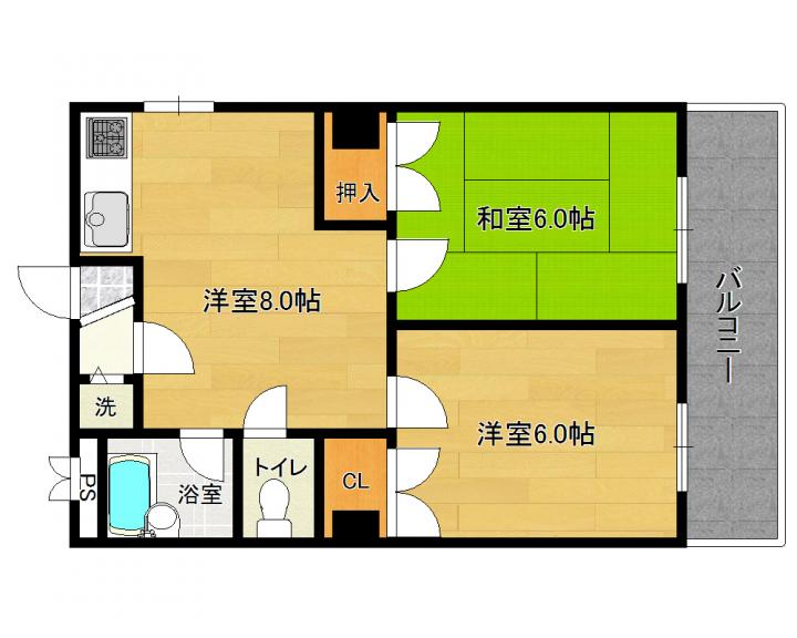 | 間取り詳細 | 和6.0帖 洋6.0帖 LDK8.0帖 |