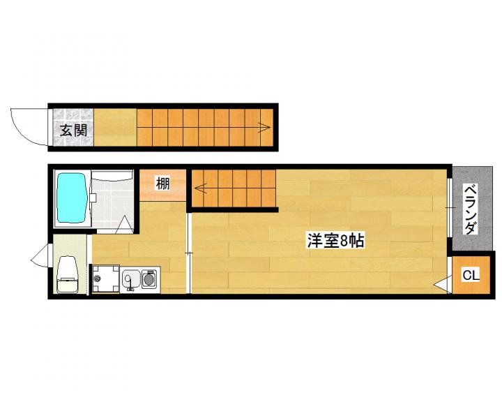 | 間取り詳細 | 洋室8帖×K |