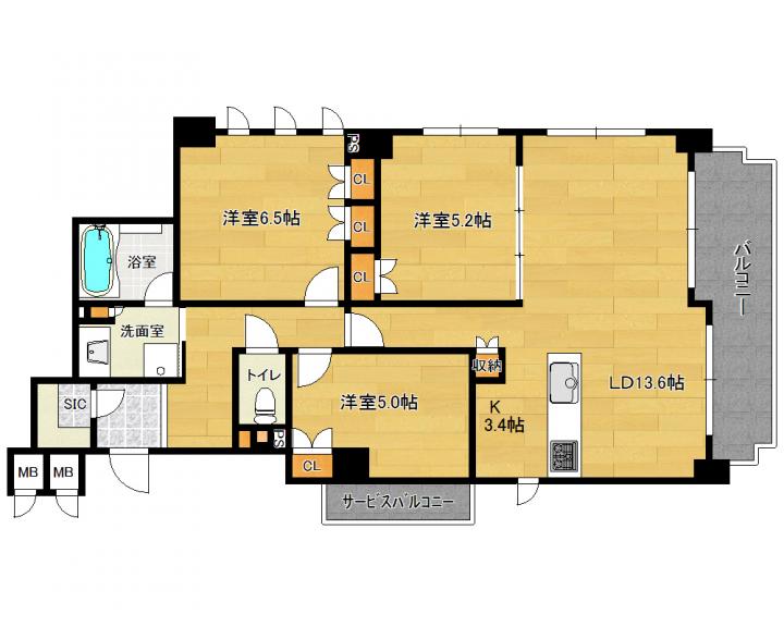 | 間取り詳細 | 洋6.5帖 洋5.2帖 洋5.0帖 LD13.6帖 K3.4帖 |
