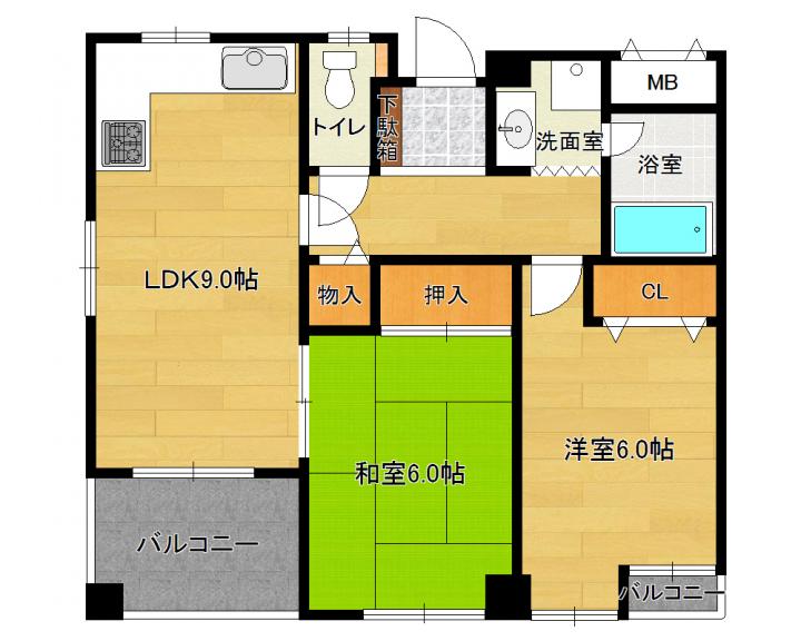 | 間取り詳細 | 和6.0帖 洋6.0帖 LDK9.0帖 |
