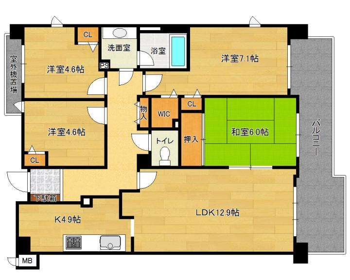 | 間取り詳細 | 和6.0帖 洋7.1帖 洋4.6帖 洋4.6帖 LDK12.9帖 |