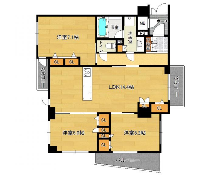 | 間取り詳細 | 洋7.1帖 洋5.2帖 洋5.0帖 LDK14.4帖 |