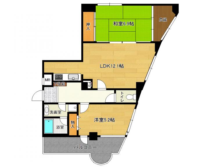 | 間取り詳細 | 和6.9帖 洋5.2帖 LDK12.1帖 |