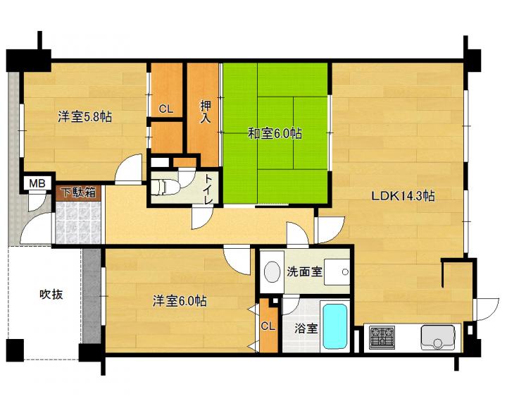 | 間取り詳細 | 和6.0帖 洋6.0帖 洋5.7帖 LDK14.3帖 |