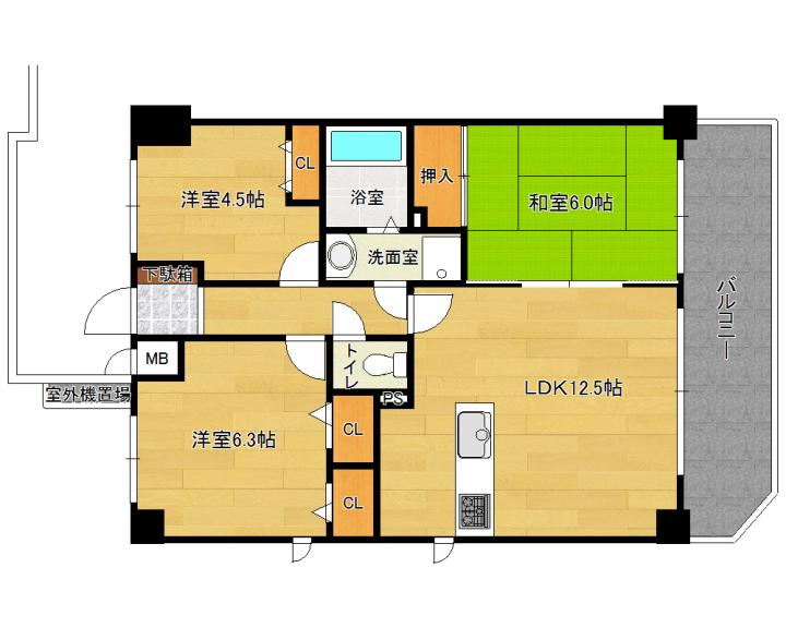 | 間取り詳細 | 和6.0帖 洋6.3帖 洋4.5帖 LDK12.5帖 |