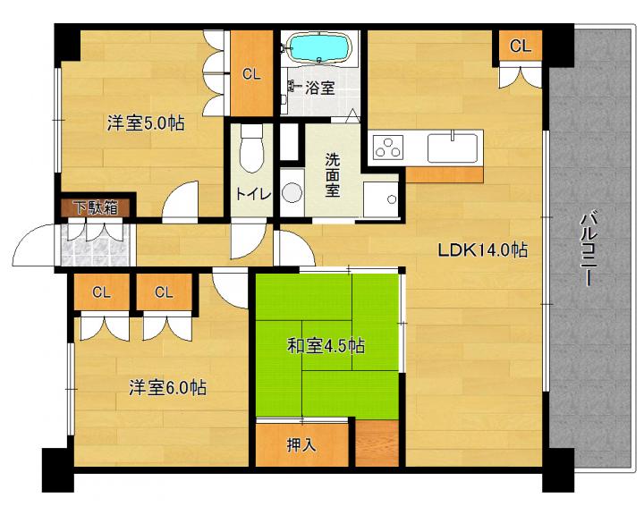 | 間取り詳細 | 和4.5帖 洋6.0帖 洋5.0帖 LDK14.0帖 |