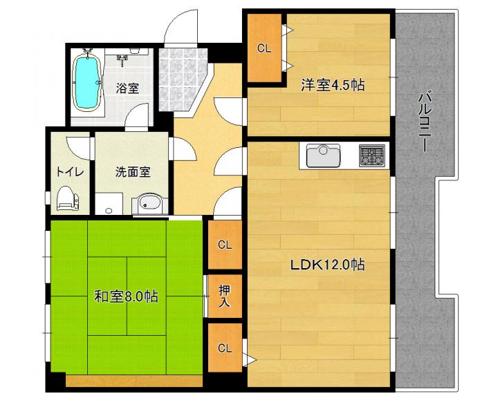 | 間取り詳細 | 和8.0帖 洋4.5帖 LDK12.0帖 |