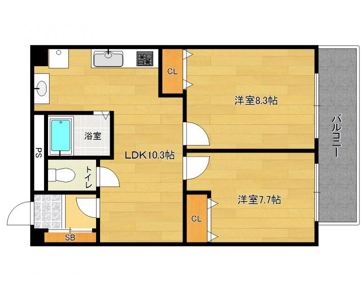 | 間取り詳細 | 洋8.3帖 洋7.7帖 |
