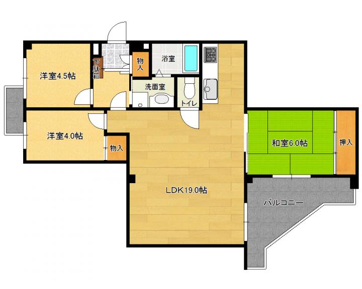 | 間取り詳細 | 和6.0帖 洋6.0帖 洋4.5帖 LDK19.0帖 |