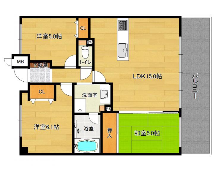 | 間取り詳細 | 和5.0帖 洋6.1帖 洋5.0帖 LDK15.0帖 |