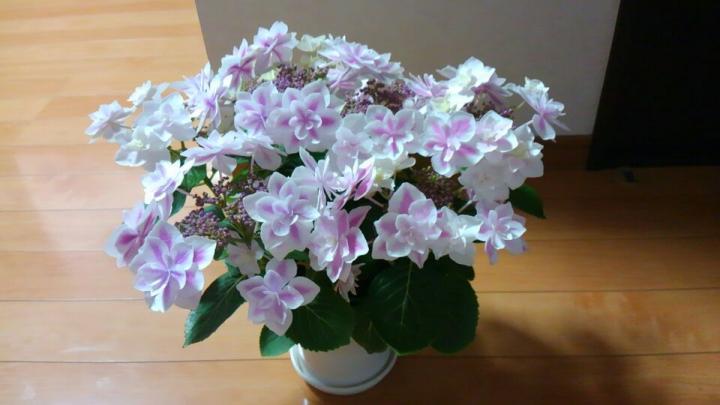 先日のガクアジサイの仲間をもう一つ*** このアジサイも大変可愛らしく見とれてしまうくらいです。 そして名前が又可愛いのです。 ”ダンスパーティー”って言うんです。 凄く可愛らしい色で花が踊っているように見えるからなんでしょうね。 なかなか余裕無いですけど、花に囲まれて暮らしたいなぁ。
