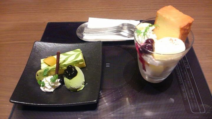 抹茶レアチーズケーキ&ブルーベリーヨーグルトパフェ