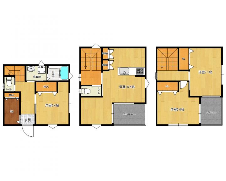 新築戸建 前道約5.6m 2面バルコニー 1BOX駐車可