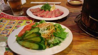 食欲の秋ですよ~(*^-^*) 2回目の岩崎塾は3、40分待ったかな。 いざ! あ~残念ながら、またまたサーロインステーキが無かったんですよね~。 ホントに残念です。 でも、はねした?のお肉も美味しかったです。 すご~く柔かくて、「ザ・お肉」 思わず「美味しい~!!」 牛タンも大きくて柔らかい!! 美肌盛りもたっぷり食べて大満足でした。 |