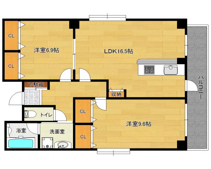 | 間取り詳細 | 洋9.6帖 洋6.9帖 LDK16.5帖 |