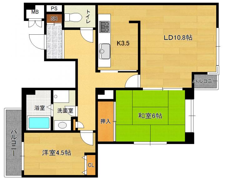 | 間取り詳細 | 和6.0帖 洋4.5帖 LD10.8帖 K3.5帖 |