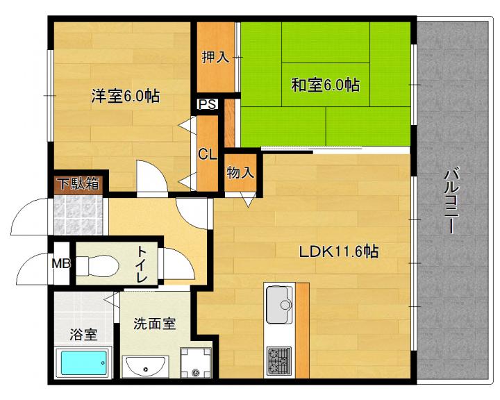 | 間取り詳細 | 和6.0帖 洋6.0帖 LDK11.6帖 |