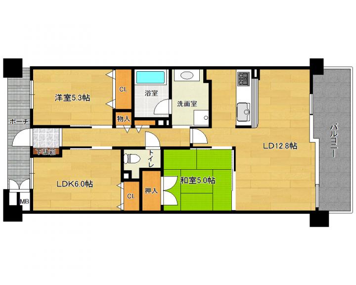| 間取り詳細 | 和5.0帖 洋6.0帖 洋5.3帖 LDK12.8帖 |