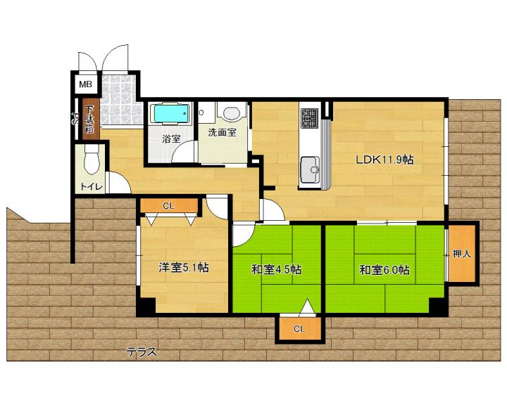 | 間取り詳細 | 和6.0帖 洋5.1帖 洋4.5帖 LDK11.9帖 |