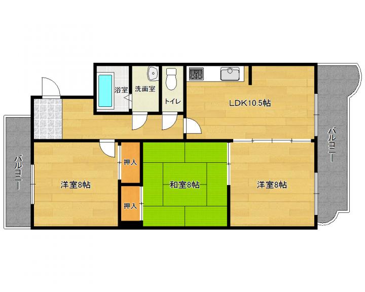 | 間取り詳細 | 和8.0帖 洋8.0帖 洋8.0帖 LDK10.5帖 |