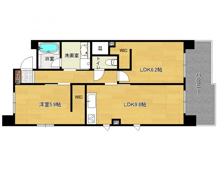 | 間取り詳細 | 洋6.2帖 洋5.9帖 LDK9.8帖 |