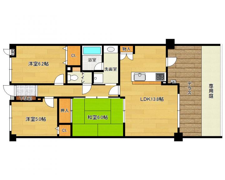 | 間取り詳細 | 和6.0帖 洋6.2帖 洋5.0帖 LDK13.8帖 |