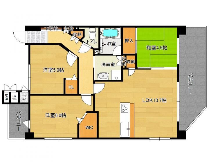 | 間取り詳細 | 和4.5帖 洋6.0帖 洋5.0帖 LDK13.7帖 |