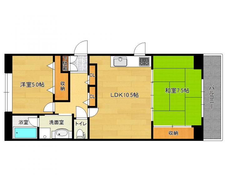 | 間取り詳細 | 和7.5帖 洋5.0帖 LDK10.5帖 |