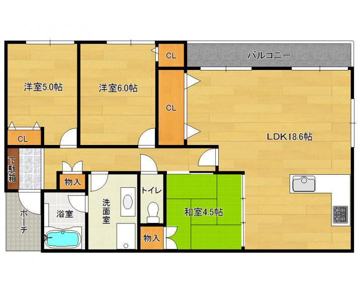 | 間取り詳細 | 和4.5帖 洋6.0帖 洋5.0帖 LDK18.6帖 |