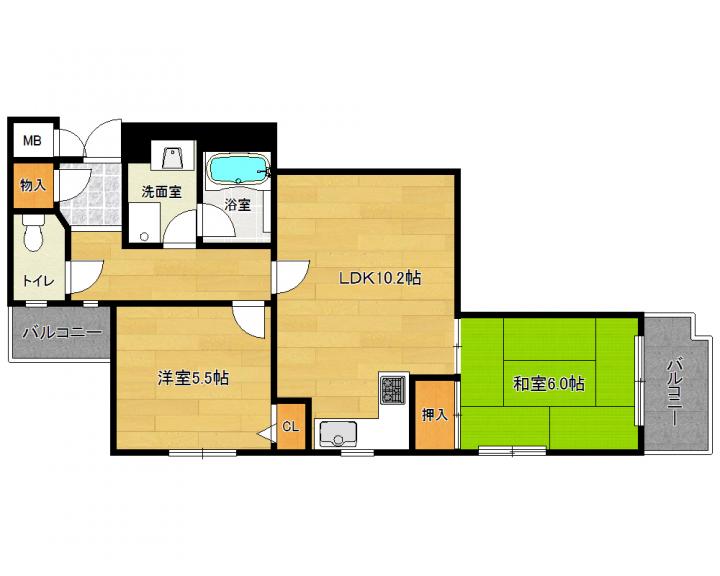 | 間取り詳細 | 和6.0帖 洋5.5帖 LDK10.2帖 |