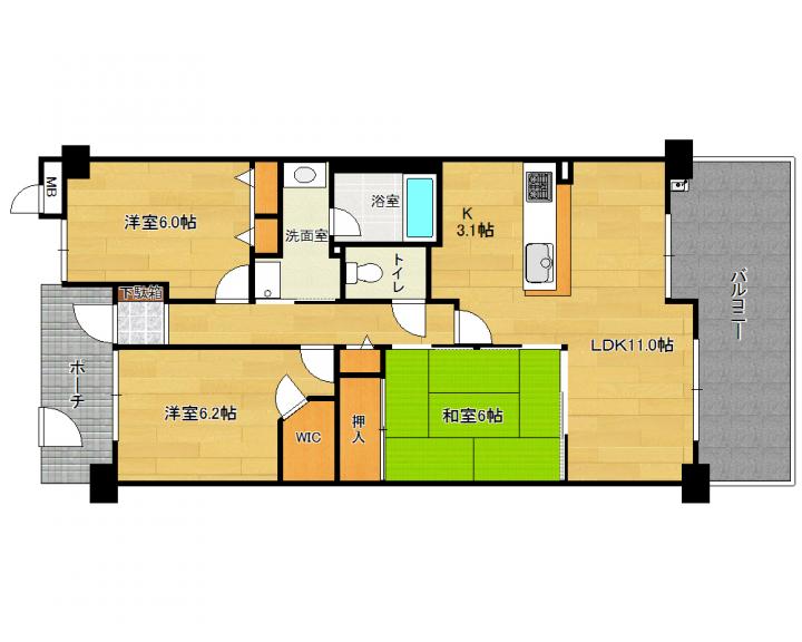 | 間取り詳細 | 和6.0帖 洋6.2帖 6.0帖 LD11.0帖 K3.1帖 |