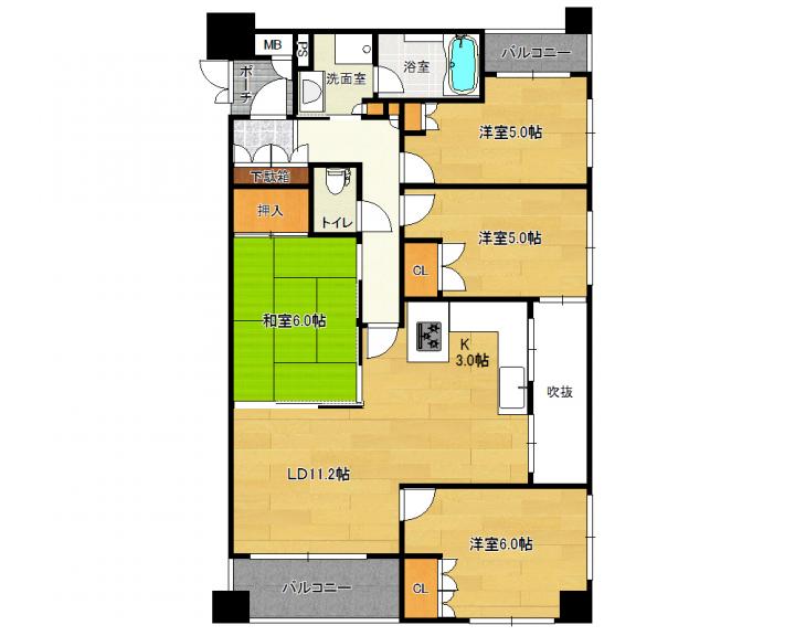 | 間取り詳細 | 和6.0帖 洋6.0帖 洋5.0帖 洋5.0帖 LD11.2帖 K3.0帖 |