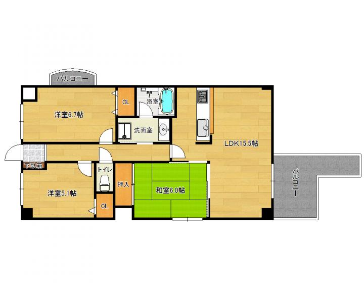 | 間取り詳細 | 和6.0帖 洋6.7帖 洋5.1帖 LDK15.5帖 |