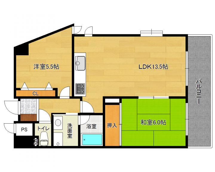 | 間取り詳細 | 和6.0帖 洋5.8帖 LDK13.5帖 |