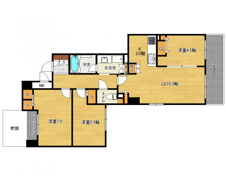 | 間取り詳細 | 洋7.0帖 洋5.5帖 洋4.5帖 LD10.3 K3.0帖 |